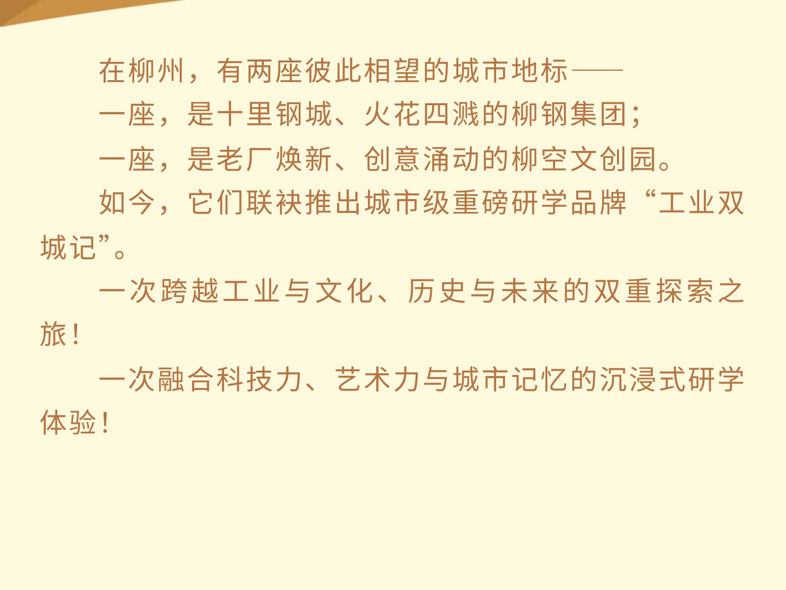 柳鋼+柳空|“工業(yè)雙城記”聯(lián)合研學(xué)品牌震撼上線! 發(fā)布時(shí)間:2025年04月25日 16時(shí)來源:本站原創(chuàng)瀏覽:52 人次