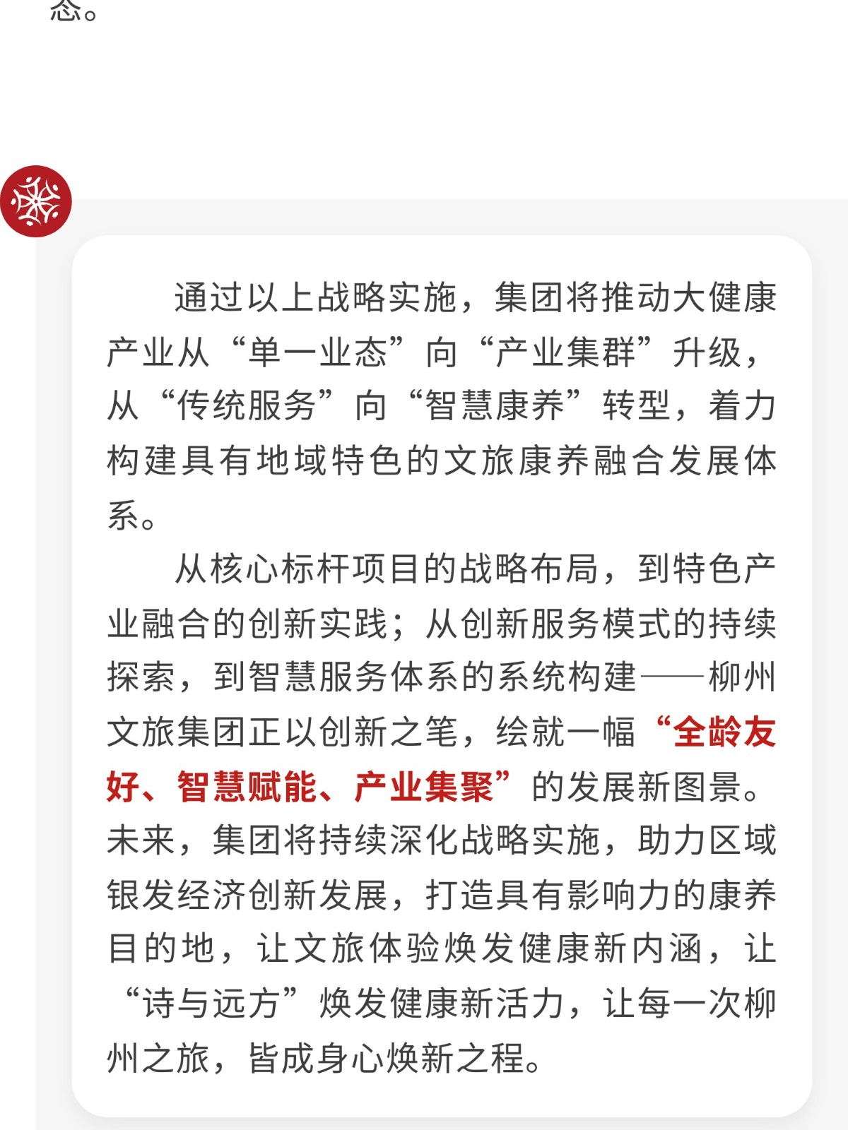 柳州文旅集團推動文旅康養(yǎng)深度融合,培育大健康產(chǎn)業(yè)集群新優(yōu)勢 發(fā)布時間:2025年09月05日 22時來源:本站原創(chuàng)瀏覽:55 人次